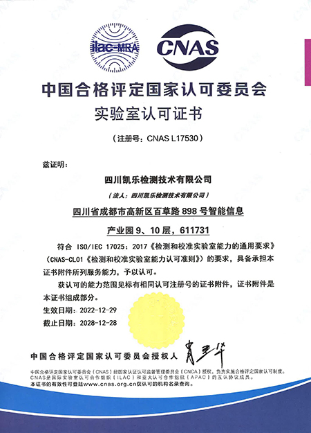 凱樂(lè)檢測(cè)認(rèn)證集團(tuán)具備檢驗(yàn)檢測(cè)機(jī)構(gòu)資質(zhì)認(rèn)定(CMA)、實(shí)驗(yàn)室認(rèn)可(CNAS)資質(zhì),目前通過(guò)CMA的包括理化綜合、重金屬、農(nóng)藥殘留有機(jī)物、獸藥殘留有機(jī)物、微生物、物理、輻射等檢測(cè)指標(biāo)近4000項(xiàng),涉及環(huán)境檢測(cè)領(lǐng)域的水和廢水、環(huán)境空氣和廢氣......